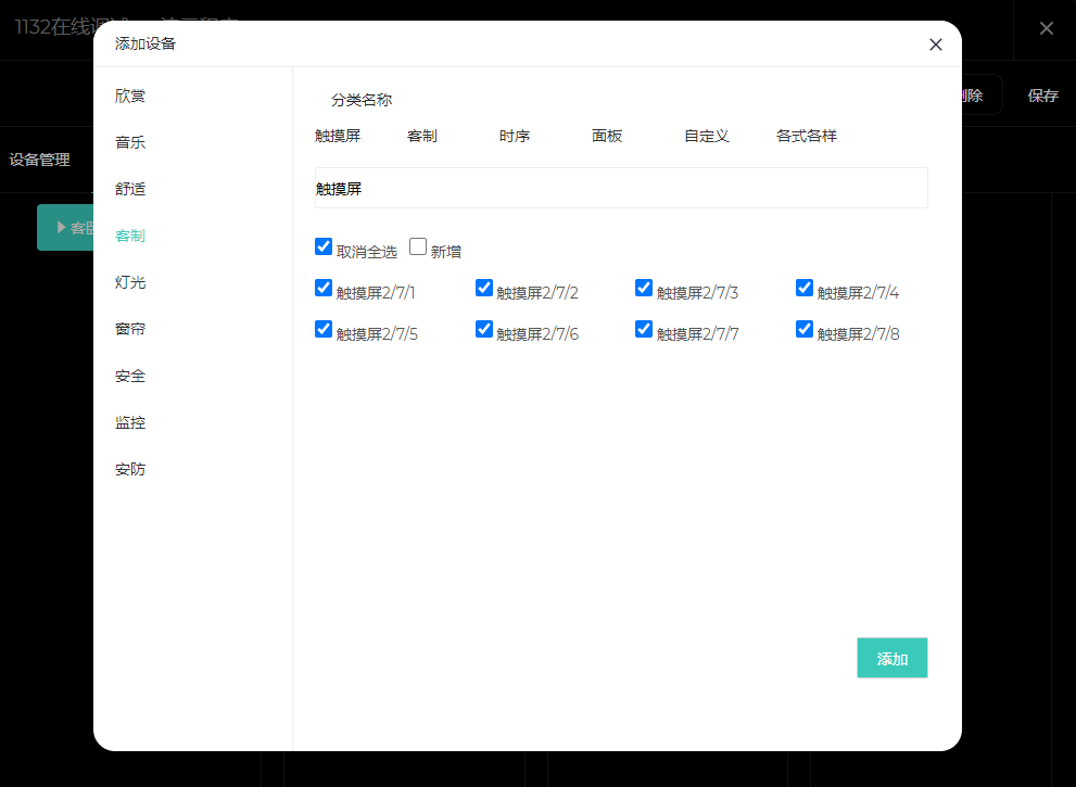驱动添加完成,点击保存,然后在区域管理界面将勾选的地址,根据分类, 添加到对应房间