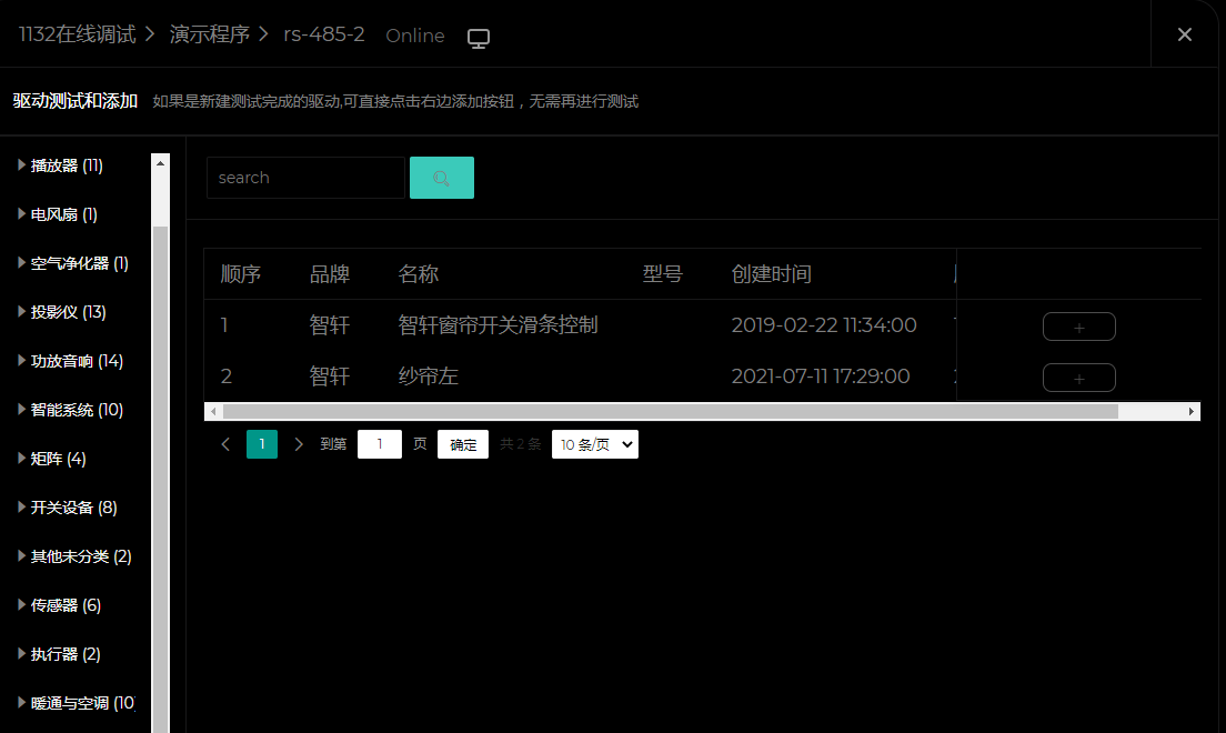 1. 点击“rs-485-1”(注意和实际的端口一致),点击“添加”,找到窗帘(11),找到”智轩(1)”,点击添加,最后选择 智轩窗帘开关滑条控制 点击添加即可 。